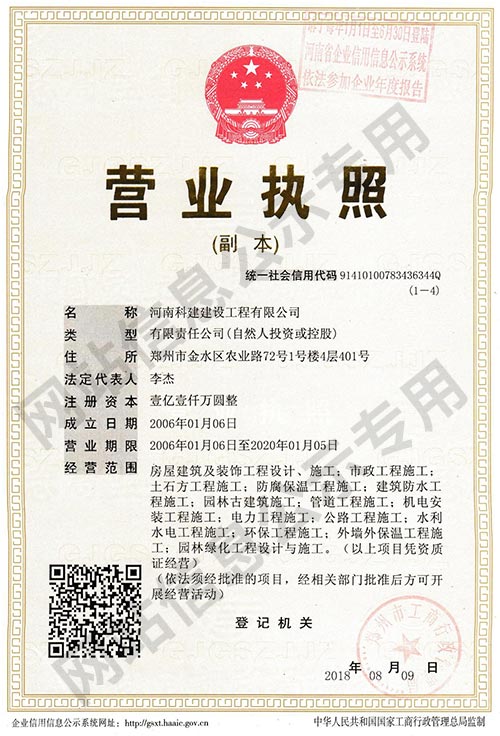 河南科建建設(shè)工程有限公司是一家以房屋建筑、建筑裝飾、建材貿(mào)易及大型建筑機(jī)械設(shè)備租賃為主營(yíng)業(yè)務(wù)的成長(zhǎng)型企業(yè)。擁有建筑工程總承包壹級(jí)資質(zhì),裝飾裝修、防水防腐保溫等專業(yè)承包壹級(jí)資質(zhì),注冊(cè)資本1.1億元。